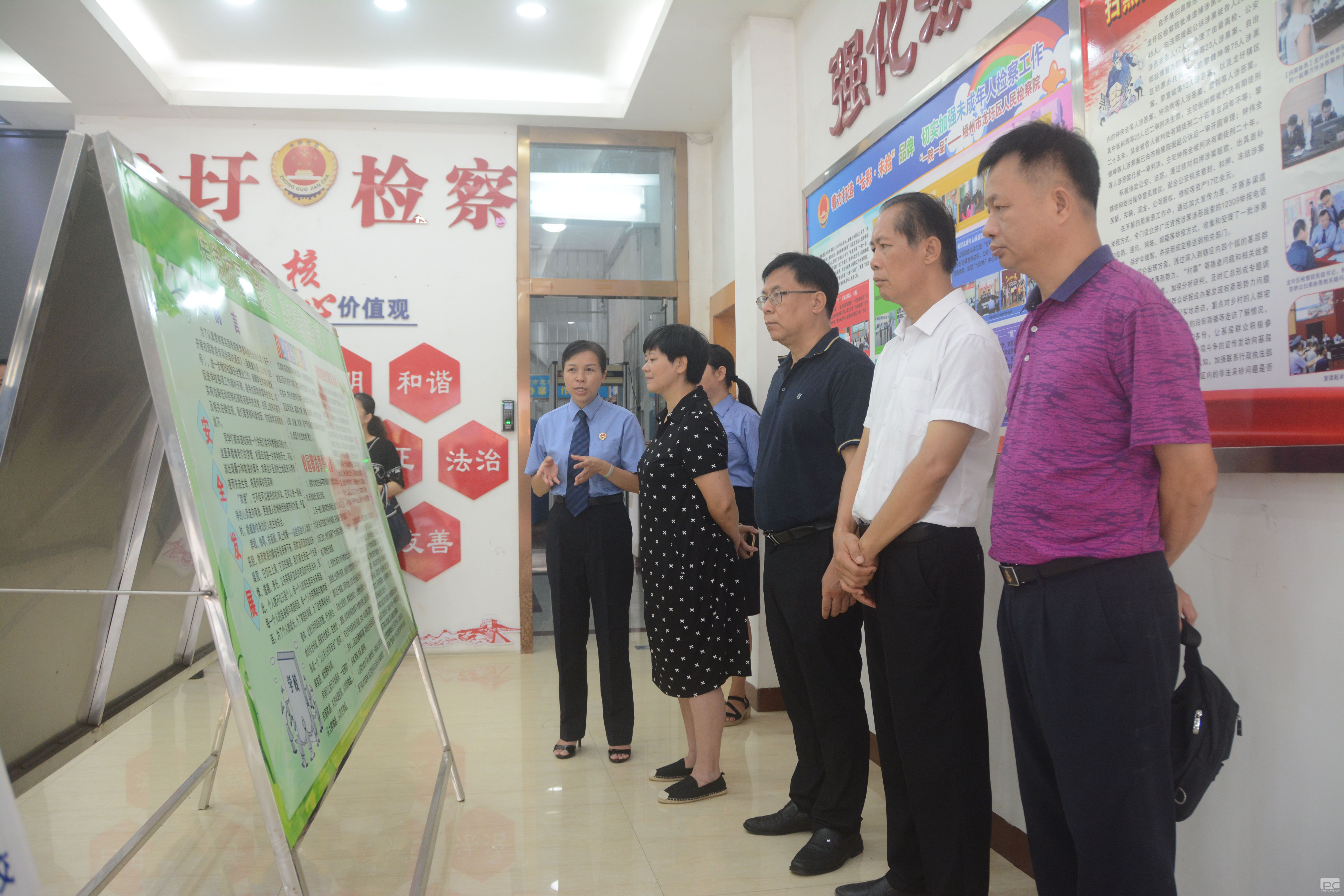 9月2日,梧州市人大常委会执法检查组到龙圩区人民检察院开展《中华人民共和国未成年人保护法》执法检查工作。市人大常委会副主任李桂珍任执法检查组组长,市人大社会建设委主任委员赵春宝任副组长,市人大常委会副秘书长张志泉、市人大社会建设委副主任委员吕春松等一起前往。龙圩区人大常委会主任张俊祺,龙圩区人民检察院党组书记、检察长梁琪陪同检查。