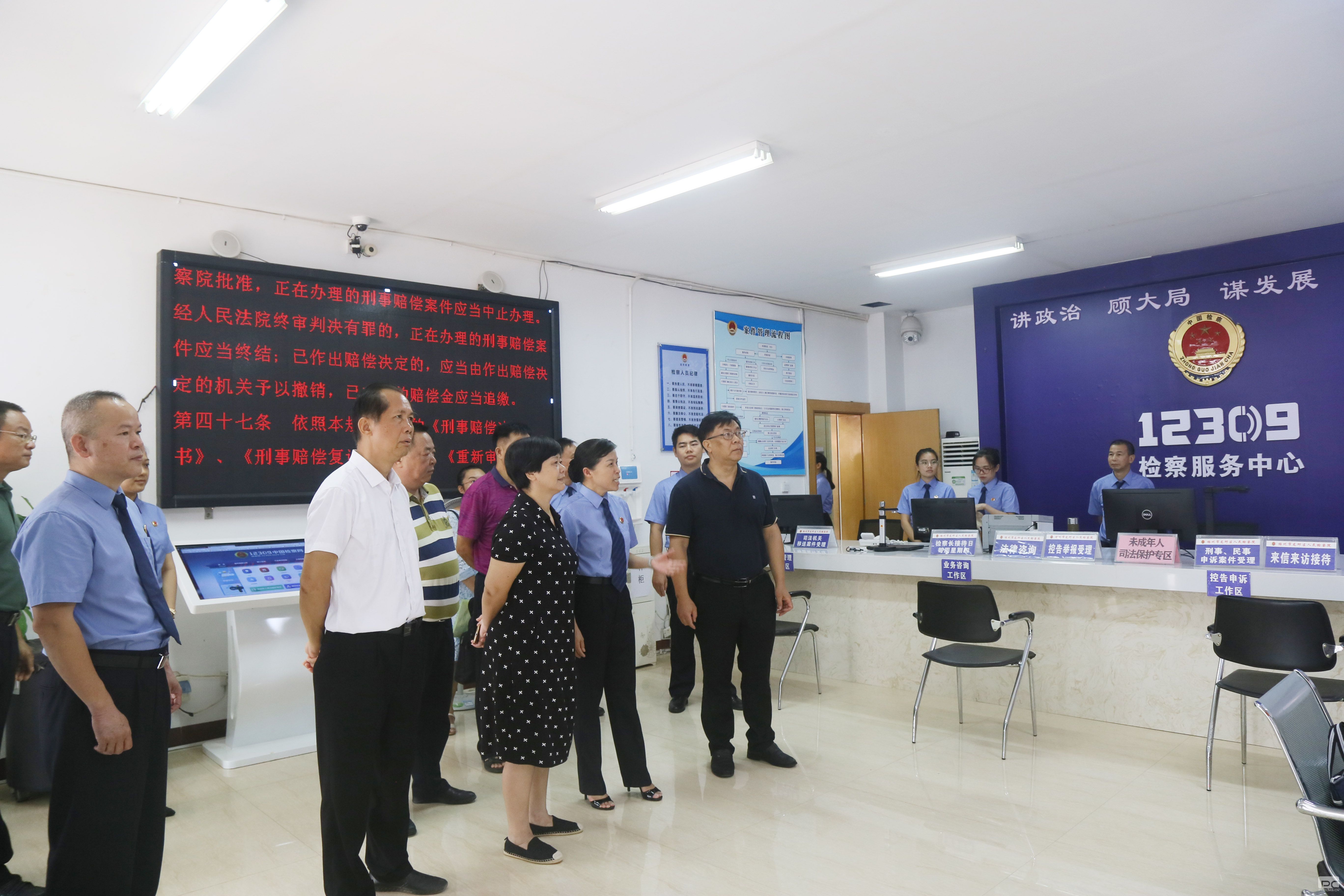 梧州市人大常委会视察龙圩区检察院相关功能区域,12309检察服务中心、未成年人心理疏导区、新时代知识学习室等。
