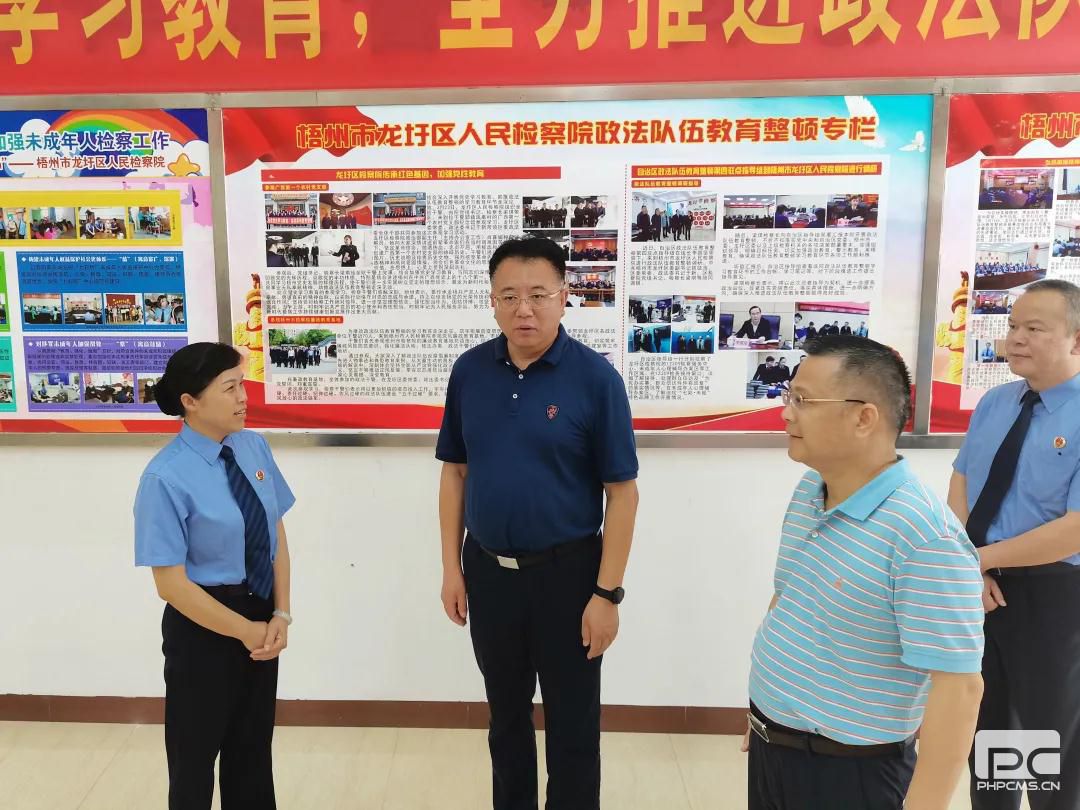 为进一步贯彻落实党中央和自治区党委、中共梧州市委、中共龙圩区委关于政法队伍教育整顿各项决策部署,持续推动政法队伍教育整顿查纠整改环节工作走深走实,5月18日下午,中共梧州市龙圩区委书记宋彤宇到龙圩区人民检察院对政法队伍教育整顿工作进行调研。区委常委、政法委书记于新,区委常委、区委办主任廖芝源,龙圩区人民检察院党组书记、检察长梁琪陪同调研。